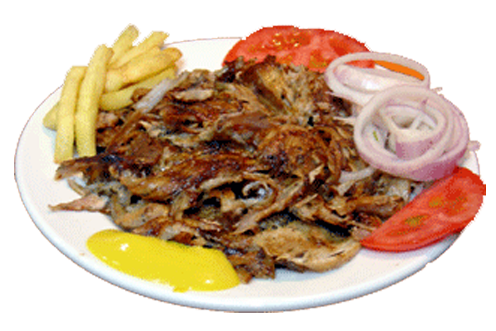 Γύρος χοιρινός 300γρ., συνοδεύεται με πατάτες, ντομάτα, κρεμμύδι