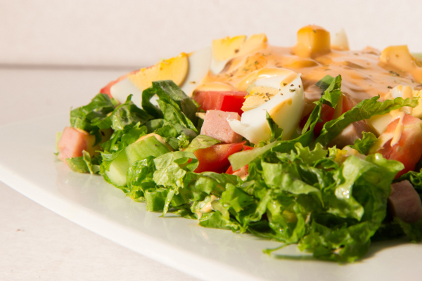 κασέρι & ζαμπόν σε κύβους, αυγό, μαρούλι, ντομάτα, αγγούρι, Chef σως