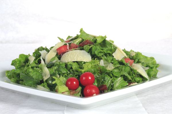 μαρούλι, ρόκα, μπαλσάμιλο, ελαιόλαδο, παρμεζάνα, λιαστή ντομάτα